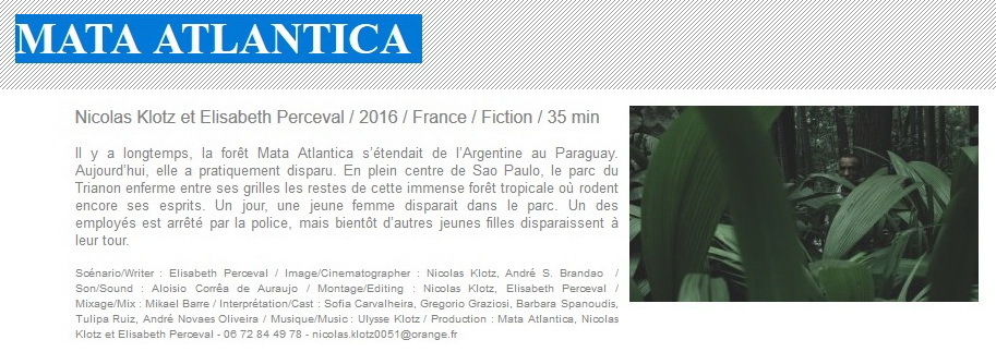 A côté de ces films, on a eu droit à un épisode de Confessions intimes – sans la psy, petit budget oblige – réalisé par un ancien fémisard, Du rouge au front. On a là le film le plus inutile de la compétition pour le moment, d’autant qu’aucun diffuseur de TF1 n’était présent pour l’embaucher ! On a aussi vu le dernier film de Nicolas Klotz et Elisabeth Perceval, Mata Atlantica : quelques jolis plans dans un truc ridicule, bancal, sans queue ni tête – contrairement au faune au cœur du film.