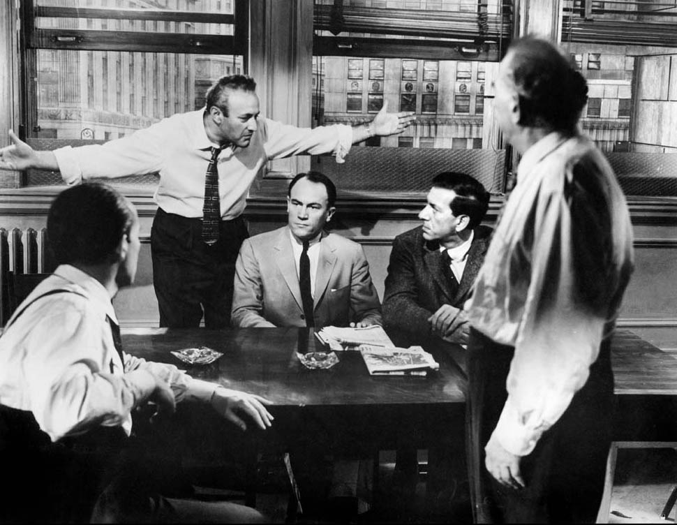 Synopsis : Un jeune homme d’origine modeste est accusé du meurtre de son père et risque la peine de mort. Le jury composé de douze hommes se retire pour délibérer et procède immédiatement à un vote : onze votent coupable, or la décision doit être prise à l’unanimité. Le juré qui a voté non-coupable, sommé de se justifier, explique qu’il a un doute et que la vie d’un homme mérite quelques heures de discussion. Il s’emploie alors à les convaincre un par un.