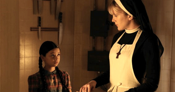 Avant l’ouverture de l’asile, Briarcliff était, entre autres, un centre pour tuberculeux géré par le Docteur Arthur Arden. Lorsque le bâtiment fut repris par Monseigneur Howard (Joseph Fiennes, Shakespeare in love) il garda Arden et lui permit de faire des expériences sur les pensionnaires sans trop savoir jusqu’où ça irait. Il découvre aujourd’hui la vérité en retrouvant Shelley, monstrueusement transformée, dans un hôpital de la région. Il lui donne les derniers sacrements et abrège ses souffrances par la même occasion.