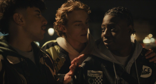 D’entrée de jeu, il présente les trois personnages principaux en nous révélant juste ce qu’il faut sur eux pour ne pas les considérer comme des clichés ambulants. Ainsi, Simon (Gaspard Gevin-Hié) endosse d’emblée le rôle d’élément apaisant à la fois dans le groupe d’amis et dans son foyer tronqué à cause du départ de son frère en taule. Pour Oscar (Bakary Diombera), les frustrations paraissent multiples et ne tarderont pas à se déchaîner. Toutefois, dans les deux cas, on ressent un certain soin dans l’écriture, afin de provoquer chez nous le genre de sympathie qui ne se transformera pas soudainement en jugement, une fois que la prémisse aura subi un retournement plutôt radical.