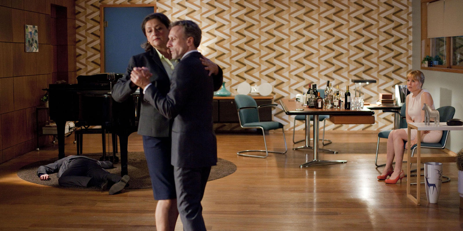 Imaginez un groupe de personnages vivant dans des trous en forêt, chassés de leur habitat naturel par un prêtre adepte de la chasse, dont le personnage principal se réfugie chez une famille bourgeoise prétextant vouloir prendre un bain. Pitch absurde ? Et pourtant dans les faits c’est exactement de cette manière que commence le film, enchaînant scènes et passades de dialogues improbables et continuant  sur cette lancée tout du long. Pour être un peu plus sérieux, disons que Borgman est une métaphore quasi biblique du mal. Rien que ça. Des suppôts de Satan qui s’immiscent au sein d’une blanche famille, se préparant à la déchirer et la manipuler de l’intérieur usant de tous les charmes et artifices possibles. Ça c’est dans l’interprétation que l’on peut en faire. Plutôt sérieux, glauque et dur en apparence, le sujet n’est en fait qu’un prétexte pour le réalisateur de faire du second degré et de l’humour à froid. Il est difficile de vous raconter quels autres types de délires recèle le film mais il est question de chiens, de sceaux de béton, de jardinage de masse, et de pièce de théâtre avec des mecs en costumes et tutus. Et en fait on rigole beaucoup mais votre capacité d’abstraction sera mise à rude épreuve ! Le problème c’est que ce traitement éclipse totalement les vraies questions « spirituelles » d’un scénario presque inexistant, ne procurant aucune morale et se terminant tout aussi bizarrement qu’il a commencé. Attention, film étrange !