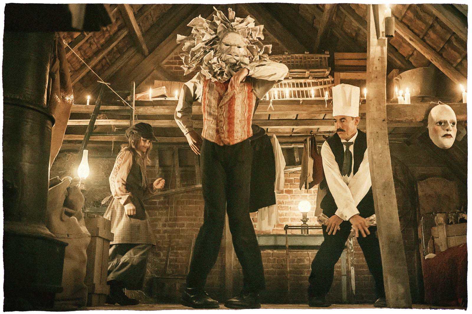 Albert Dupontel, doté d’un budget confortable de cinq millions d’euros, signe une adaptation fidèle et ambitieuse du roman de Pierre Lemaître. Porté par Laurent Lafitte, Niels Arestrup, Albert Dupontel et Nahuel Perez Biscayart, révélé dans 120 Battements par minute, ce casting donne une véritable épaisseur au long-métrage. Chaque acteur est parfaitement investi, très impliqué, et offre une prestation parfaite. Nahuel Perez Biscayart, derrière ses masques, doit faire passer les émotions uniquement par le biais de son regard. Regard bleu et sensations sont au rendez-vous. Albert Dupontel, lui, joue encore les personnages sensibles, naïf sur les bords et surtout très spontané.