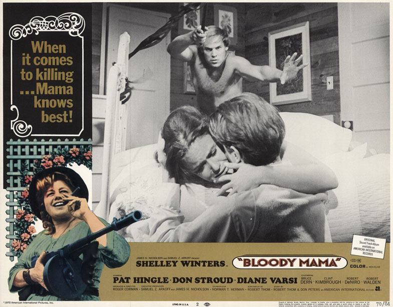La toxicomanie du personnage incarné par Robert de Niro est par exemple abordée de front (alors que les drogues de type héroïne/cocaïne n’avaient pas encore connu leur essor majeur dans les années 30), de même que la sexualité, largement à l’honneur puisqu’on évoque la prostitution, les relations échangistes, l’homosexualité (via le personnage de Robert Walden) ou encore les frustrations sexuelles, qui hantent littéralement le personnage de Shelley Winters. Insatisfaite, Ma’ Barker pense en effet pouvoir s’accomplir en tant que femme en découvrant l’orgasme, et le recherche auprès de plusieurs compagnons : paumée autant dans son corps que dans son pays, ne parvenant pas à trouver sa place – si ce n’est en tant que mère – elle finira par rejeter la société en bloc, à l’image de la jeunesse américaine du début des années 70, perdue face à l’horreur de la guerre du Vietnam.