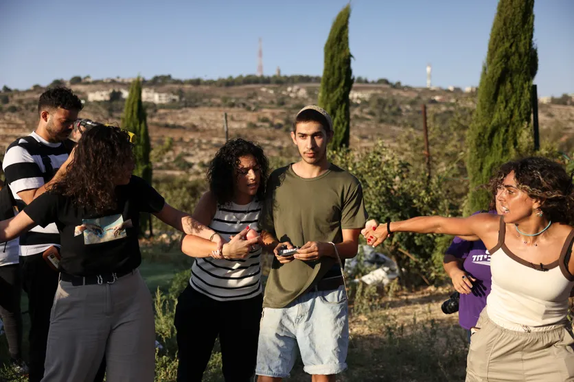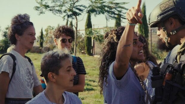 Le deuxième endroit a pour nom Adama et c’est un petit village du nord de la Cisjordanie, entouré par des colonies israéliennes qui menacent de l’absorber. On y rencontre Alaa Nasr et ses amis qui font part de leur volonté de ne pas fuir,  de ne pas quitter leurs maisons, de défendre leur village  malgré les attaques régulières et les tirs dont ils sont les objets, malgré les difficultés de plus en importantes qu’ils rencontrent pour se déplacer. Comme dit l’un d’eux : « C’est difficile de réaliser que les autres peuples peuvent facilement se déplacer ».   Même si on apprécie la combativité de Alice Kisiya dans son combat non violent, a priori inégal, contre les colons, l’armée et la police israéliennes, force est de constater que les prises de position les plus fortes viennent d’activistes juifs israéliens qui participent aux mobilisations contre la colonisation organisées par Alice, tel Ofer Cassif, membre de la Knesset, qui compare ce que vivent aujourd’hui les palestiniens à ce qu’ont vécu les membres de sa famille, en Pologne, 80 ans auparavant. Tels Eran, 23 ans, et Inbar, 21 ans, deux jeunes juifs israéliens qui parlent sans détour, Eran affirmant que l’Etat d’Israël prendra fin un jour, considérant que l’idée que son existence se prolonge sous une forme ou sous une autre implique qu’il continuera à vouloir imposer sa politique d’agression ce qui, pour lui, n’est pas réaliste.  A la vision du film, une constatation assez surprenante s’impose : alors que ce qu’on voit dans le regard et le comportement des palestiniens respire la joie de vivre, l’optimisme et une volonté affichée de « vivre ensemble », c’est plutôt la haine qu’on devine dans le regard des colons. Combat a priori inégal, avons nous écrit : sauf que début juin 2025, postérieurement à tout ce qui est montré dans le film, la Cour suprême israélienne a statué en faveur de la famille d’Alice et leurs droits sur leurs terres ont été confirmés. Les colons qui avaient investi leur terrain en juillet 2024 ont été expulsés et il n’est pas impossible que le restaurant familial soit ouvert à nouveau !