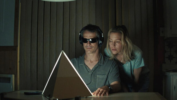 Après avoir à peu près tout essayé pour sortir de cette déprime, Adam en arrive à  commander une lampe solaire thérapeutique. Une décision dont les conséquences vont dépasser ses espérances : un coup de téléphone au centre d’appels de l’entreprise qui commercialise le matériel  et Adam tombe illico amoureux de la voix qu’il entend, la voix de Tina (Doit on y voir un clin d’œil au trop fameux slogan de Margaret Thatcher, « There is no alternative » ?). Tina est mariée, elle a 2 filles, l’une d’elle étant d’ailleurs également sujette à une forme d’éco-anxiété, Tina est anglophone et elle habite dans l’Ontario, à près de 1000 kilomètres de l’endroit où réside Adam. Toutefois, une catastrophe naturelle va permettre d’éliminer toutes les entraves à la concrétisation de ce véritable coup de foudre. Comme quoi, une lampe solaire thérapeutique est à même d’apporter de la lumière dans un monde bien sombre, comme quoi l’amour est capable d’effacer les pensées les plus noires d’un individu. Il y a 6 ans, Anne Émond avait déjà montré sa capacité à dépasser les codes d’un genre avec Jeune Juliette. Dans ce film, le genre en question était celui des films pour ados. Avec Amour Apocalypse, il s’agit de la comédie romantique, genre que la réalisatrice fait se frotter à un récit dystopique. Elle le fait en se montrant à la fois pleine de légèreté et de profondeur, en pratiquant un humour facétieux et décalé,  bien servie qu’elle est par les prestations de Patrick Hivon et de Piper Perabo, les interprètes d’Adam et de Tina.