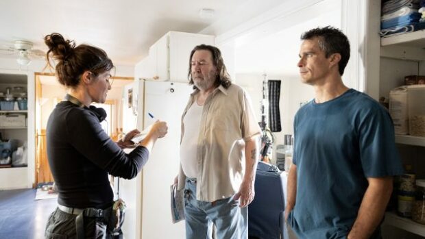 La baisse de la natalité est un sujet dont on parle de plus en plus. Parmi les causes de cette baisse, la peur de mettre au monde des enfants sur une planète souffrant de plus en plus du dérèglement climatique est souvent évoquée. Mais qu’en est-il en amont ? Quelle influence le réchauffement climatique et les cataclysmes qui l’accompagnent ont-ils sur la vie amoureuse de nos contemporains ? Comme Amour apocalypse est un film canadien, la question peut se poser ainsi : va-t-on ou non continuer à « tomber en amour » comme si de rien n’était ? Ou alors, « tomber amoureux » permettait-il, au contraire, de combattre l’éco-anxiété chez ceux et celles qui en souffrent ? Vastes sujets, me direz vous. Ce sont ces sujets auxquels la réalisatrice canadienne Anne Émond s’est attaquée dans Amour apocalypse, son 5ème long métrage, présenté à Cannes 2025 dans la sélection de la Quinzaine des cinéastes, mais seulement le 3ème à sortir dans notre pays, et elle a décidé de les traiter sur le ton de la comédie. Partant d’une situation qu’elle avait connue personnellement, celle de se sentir sombrer dans la dépression, elle a imaginé le personnage d’Adam (comme par hasard, le nom du premier être humain créé par Dieu selon certaines croyances), 45 ans, québécois, propriétaire d’un chenil, un homme bon et généreux mené par le bout du nez par Romy, son assistante, et, surtout, totalement déprimé par le réchauffement climatique.