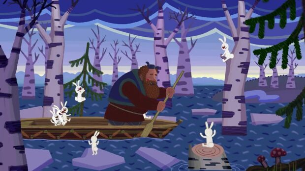 – La Balade de Mazayka de Yuri Chaika-Pronin (Russie, 4′, 2023) : Le légendaire grand-père Mazaito s’est donné pour mission de sauver de la noyade tous les animaux pris par les eaux. Chantant à la barre de sa barque, il récupère lapins et loups pour leur offrir un asile sûr sur la terre ferme.