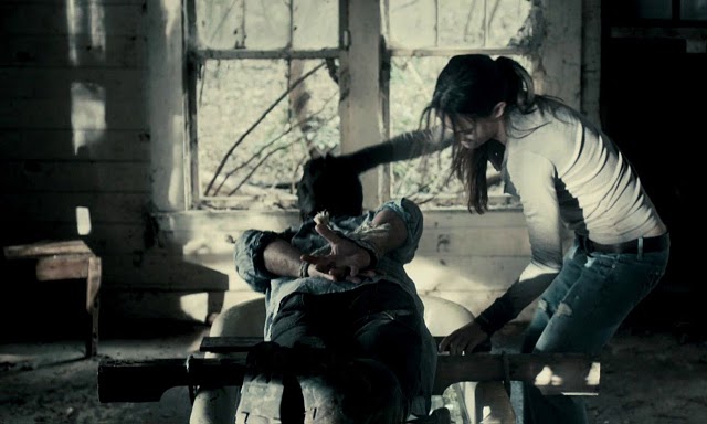 La jeune femme va donc personnaliser son châtiment en fonction du rôle qu’a joué chacun de ses bourreaux lors du viol. On aura ainsi droit à une bonne dose d’inventivité. Chacun a un instrument de torture personnalisé, que la belle, en digne héritière de MacGyver, a dû fabriquer avec son couteau suisse. Les tortures sont ainsi originales et réservent de sacrées surprises, même si là encore la torture physique prend totalement le pas sur le psychologique. Dommage, car il y avait matière à faire. Surtout avec le Shérif sadique et sa gentille petite famille.