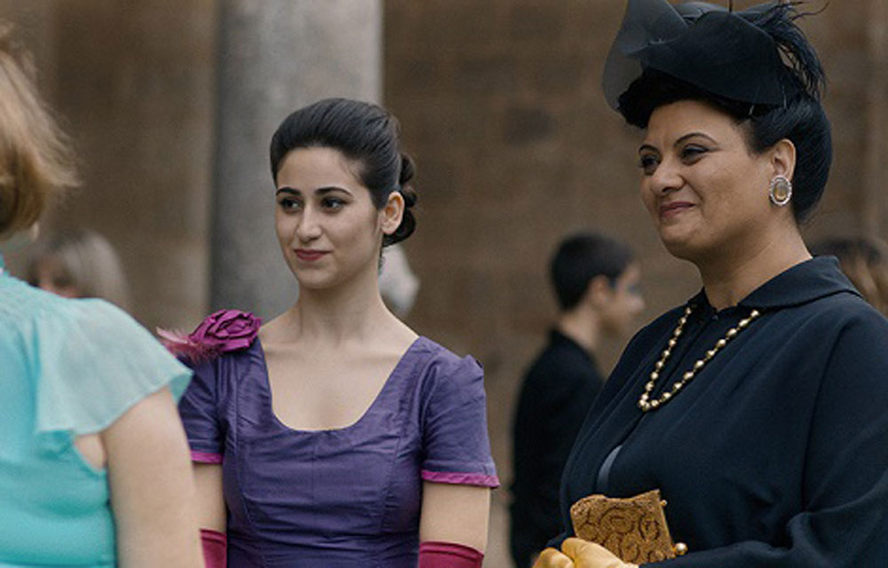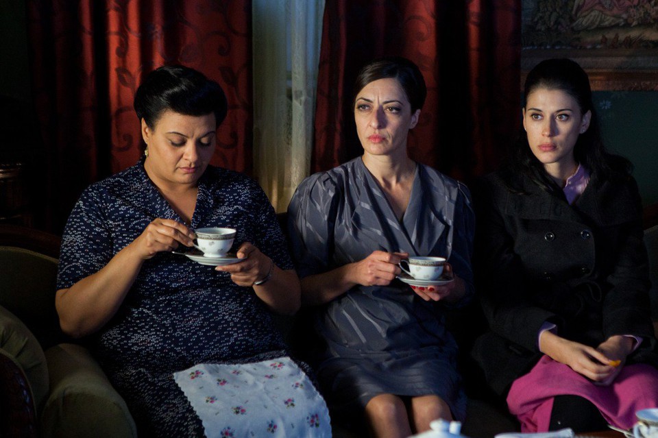 A l’arrivée de Badia dans la villa Touma, il est difficile de savoir dans quelle époque précise se déroule l’action. Le taxi qui a emmené Badia jusque là date manifestement des années 60 et tout semble vieillot dans la maison, y compris le comportement des 3 sœurs. Ce n’est que 20 minutes plus tard, lors d’une première sortie dans le cœur de Ramallah, que l’on prend conscience d’une action, sinon contemporaine, du moins peu éloignée de notre époque dans le temps. Très vite, Suha Arraf nous montre ce qu’est la ségrégation sociale et religieuse dans une ville comme Ramallah : Abu Hassan, le jardinier musulman, pas question d’accepter que Badia puisse l’appeler mon oncle. « Tu crois qu’il est notre égal ? », lui fait-on comprendre. Pas question non plus de préférer la danse orientale aux pages classiques jouées au piano. Le huis clos dans la villa Touma aurait pu être étouffant, voire indigeste. Heureusement, les lumières et la photographie de Yaron Scharf arrivent à illuminer le film, même dans les scènes tournées dans cet intérieur sans joie. Quant aux comédiennes, elles sont superbes. Maria Zreik, qui interprète le rôle de Badia, n’avait comme expérience qu’un petit rôle dans une série TV : elle fait preuve ici d’un jeu très sûr et très varié dans un rôle difficile ; dans le rôle de Juliette, on retrouve avec plaisir Nisreen Faour qui nous avait enchantés il y a 6 ans dans l’excellent Amerrika, film dont la réalisatrice, Cherien Dabis, interprète le rôle d’Antoinette.