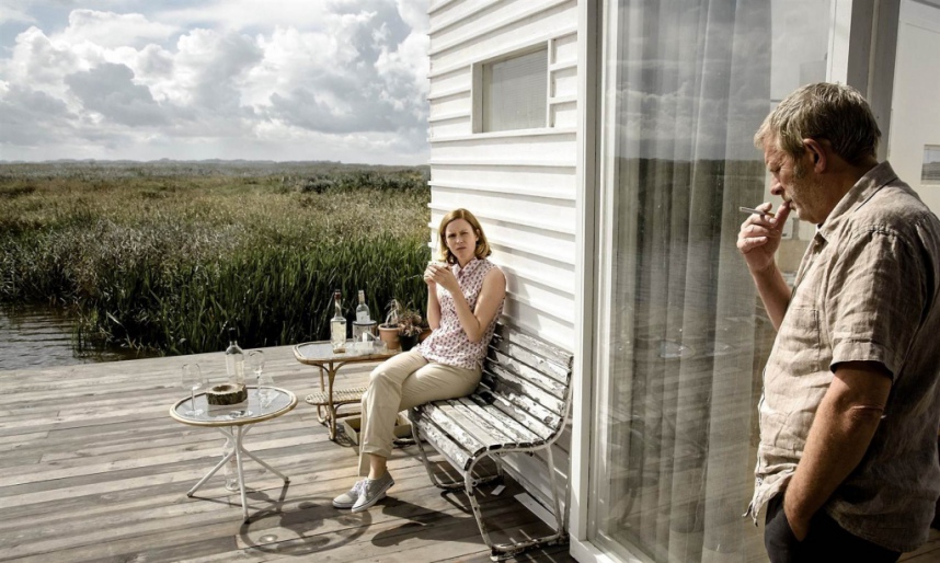 Des thrillers bien noirs qui flirtent avec la comédie quelque peu déjantée, le genre est loin d’être nouveau. La qualité des films qui s’aventurent dans ce genre dépend beaucoup du dosage concernant la partie déjantée et il arrive que même les plus grands arrivent à se prendre les pieds dans le tapis. Par exemple, les frères Coen dans No Country for Old Men et, surtout, Quentin Tarentino dans Boulevard de la mort. Et alors, ce fameux dosage, qu’en est-il dans La Peau de Bax ? Eh bien, il s’avère plutôt réussi, même si on peut penser que Alex van Warmerdam aurait pu pousser un peu plus loin les ressorts comiques de son film et, surtout, en accélérer le rythme à plusieurs moments. A propos de La Peau de Bax, on remarquera que ce film néerlandais se déroule, comme le récent thriller espagnol La Isla Minima, dans un environnement de marécages qui n’est pas sans rappeler l’atmosphère poisseuse des bayous de Louisiane. Une tendance qui se dessine ? En tout cas, ce type de paysage permet au réalisateur, bien aidé par son fidèle Directeur de la Photographie Tom Erisman, de rappeler qu’il a été peintre avant d’être cinéaste.