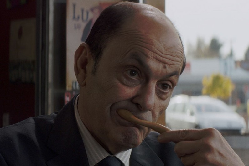 Monsieur Sim, on ne va pas le quitter de tout le film : sa rencontre avec Poppy, une jeune femme qui va faire en sorte de le mettre en contact avec son oncle Samuel, pensant qu’il est apte à aider ce dépressif ; ses visites à son père, qui s’est retiré dans les Pouilles et dont il a encore beaucoup à apprendre sur son passé ; sa visite à Luigia, une ancienne jeune voisine dont il était amoureux, devenue moins jeune mais toujours attirante ; ses rapports avec Caroline, son ex, et avec leur fille ; sa rencontre avec Liam et sa fille, une rencontre qui va peut-être « relancer » son existence ; et, puis, pour lier toutes ces séquences éparpillées, ses premiers pas dans un nouveau travail qu’on lui a proposé, celui de représentant ce commerce d’une marque de brosses à dents qui va « révolutionner l’hygiène bucco-dentaire » avec un nouveau modèle écologique et Made in France. Des premiers pas qui vont faire du film un road movie se déroulant dans des paysages hivernaux, dans une voiture hybride et sous la conduite d’un GPS omniprésent.