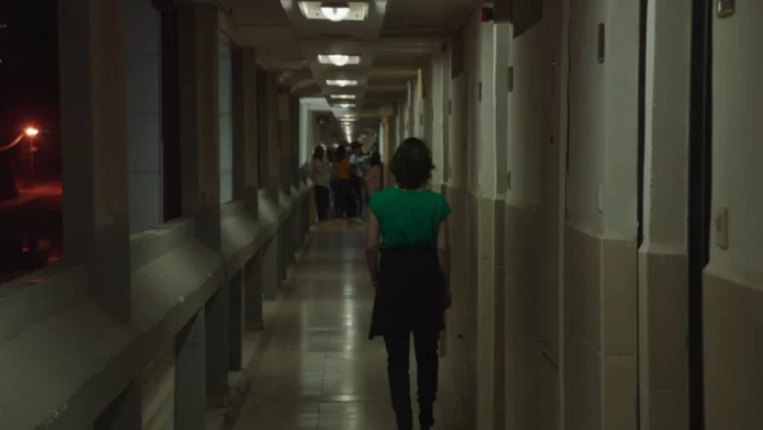 Lorsqu’on sait que Amos GitaÏ a été architecte avant de se lancer dans le cinéma, on ne sera pas surpris de son choix concernant le lieu de tournage de son film. Il s’agit d’un immeuble qui passe pour être, avec ses 250 mètres de long, le plus long existant au Moyen Orient. Construit à Beer-Sheva, en plein désert du Néguev, c’est un logement social, un bâtiment pour accueillir, un shikun. Les très longues coursives de ce bâtiment voient arriver une grande quantité de gens, des israéliens, des palestiniens, des ukrainiens, d’autres encore, et ces lieux se prêtent parfaitement aux plans séquence qu’affectionne le réalisateur. On y parle de nombreuses langues et on y rencontre la peur, avec certains qui se transforment en rhinocéros et d’autres qui résistent. Au milieu de tout cela, un personnage à part, magnifiquement interprété par Irène Jacob : effrayée par l’apparition de ces rhinocéros, elle s’exprime en français et c’est en quelque sorte un mélange des différents protagonistes de la pièce. Auprès d’elle, Amos Gitaï a réuni des comédiennes qu’il avait déjà fait tourner, comme Yaël Abecassis, Hana Laslo et la palestinienne Bahira Ablassi.