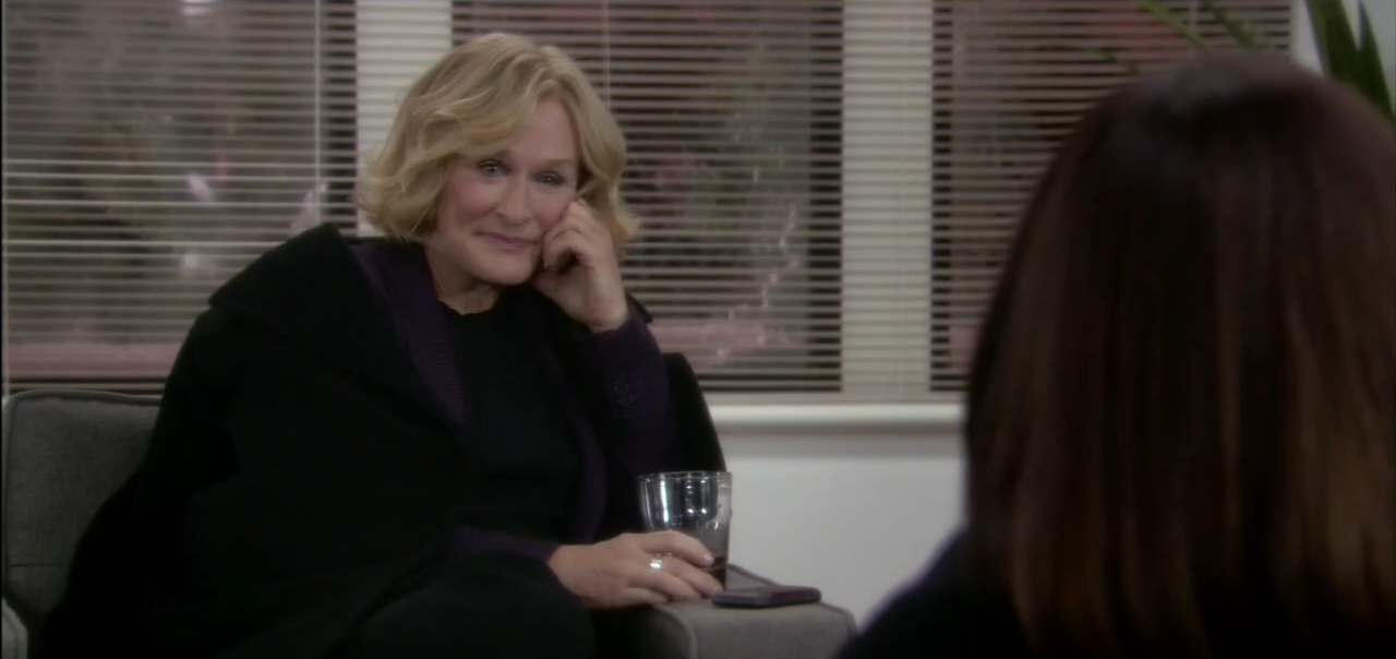 Autour d’un verre (chassé avec agressivité et détermination par une Patty Hewes probablement alcoolique) le climat est favorable aux confessions. Les pieds sur le fauteuil, Patty donne l’impression que le tête-à-tête sera plus intimiste qu’Ellen le veut, et invite cette dernière à parler de sa famille, son enfance. La grande avocate multiplie les compliments, les marques d’affection et d’admiration. Jusqu’à s’avouer décontenancée, et pousser la débutante à révéler la source de sa colère et de sa répulsion envers celle qui était son mentor. Comme si elle ne savait pas.
