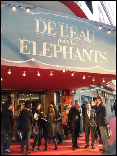 Robert Pattinson, Reese Witherspoon, Christoph Waltz et Francis Lawrence présentaient hier en avant-première au Grand Rex De l’eau pour les éléphants. Une projection très spéciale dans une salle datant des années 30 re-décorée sur le thème du cirque… on n’aurait pas pu rêver mieux pour ce film tiré du roman homonyme de Sara Gruen.