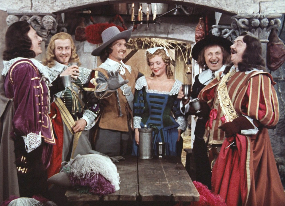 Placés sous le signe de l’action et de l’humour, Les trois mousquetaires et Le capitan développent une atmosphère très familiale. Les héros (Georges Marchal dans l’un, Jean Marais dans l’autre) affichent un sourire ultra-brite se révèlent rapidement pleins de prestance, combattant vaillamment vils faquins et bandits de grands chemins, les intrigues sont solides, et le tout est naturellement relevé par l’irrésistible présence comique de Bourvil (qui joue dans les deux films). Si bien sûr le « réalisme » historique n’est pas vraiment de rigueur, on ne pourra que souligner le soin apporté à la reconstitution de l’époque (décors, costumes, tout respire le faste et l’opulence), qui rappelleront aux enfants et aux plus grands le charme de leurs livres d’images d’antan, propres, désuets, et tellement manichéens qu’ils en deviendraient presque « aseptisés ». Les duels à l’épée se suivent et ne se ressemblent pas trop grâce aux cabrioles des acteurs principaux, et on aura naturellement droit aux classiques traquenards tendus par d’infâmes méchants, aux traditionnelles courses poursuites à cheval ou encore à la sempiternelle romance entre le héros et sa dulcinée.