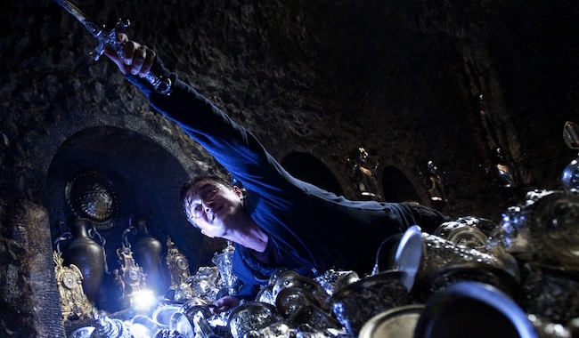L’entame du film est pourtant réussie et ceux qui veulent du rythme seront servis. Les scènes s’enchainent sans temps mort et tout va très vite. Après une introduction descriptive qui permet de se remettre dans le bain, nos 3 sorciers se mettent en quête de La coupe de Poufsouffle dans la banque de Gringotts. Rien à redire sur ce passage graphiquement très abouti, rythmé et au suspens insoutenable, c’est beau et ça décoiffe. Malheureusement l’intensité va vite retomber.