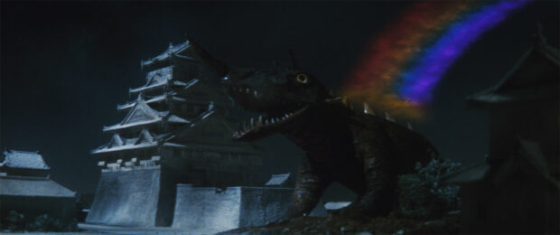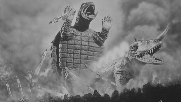 Gamera – Daikaiju Gamera (1965) : Suite à une explosion nucléaire, une tortue préhistorique émerge de l’océan et détruit des villes au large du Japon. Son nom est Gamera…