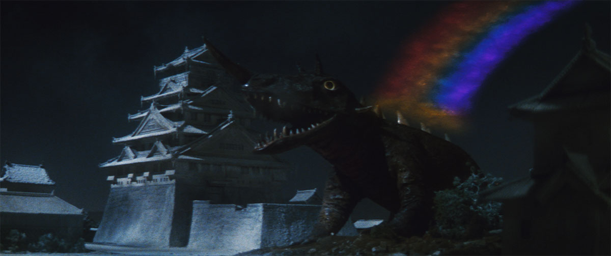 Dans ce 3ème volet, la Daiei introduit Gyaos, nemesis de Gamera. On retrouvera la créature dans plusieurs films de la saga, comme le 1er volet de la trilogie Heisei en 1995. Réalisé par Noriaki Yuasa.