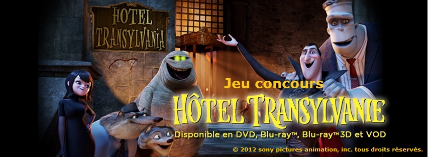 Du 19 au 26 juin 2013 à minuit, répondez correctement aux 3 questions posées et indiquez vos coordonnées complètes. Vous gagnerez peut-être des goodies collector Hôtel Transylvanie dans la limite d’une seule participation par foyer. Toute participation incomplète (champ non rempli) ne pourra être prise en compte. Par ailleurs, vous augmenterez vos chances en partageant cet article sur Facebook, Twitter et Google+ (+1 chance maximum par réseau, en mettant le lien dans les commentaires ci-dessous).