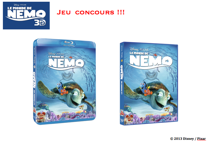 - Les 5 premiers gagnants recevront 1 Blu-Ray du Monde de Némo 3D chacun