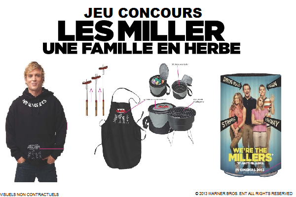 Du 09 au 18 septembre 2013 à minuit, répondez correctement aux 3 questions posées et indiquez vos coordonnées complètes. Vous gagnerez peut-être des places de cinéma et des goodies pour le film Les Miller une famille en herbe dans la limite d’une seule participation par foyer. Toute participation incomplète (champ non rempli) ne pourra être prise en compte. Par ailleurs, vous augmenterez vos chances en partageant cet article sur Facebook, Twitter et Google+ (+1 chance maximum par réseau, en mettant le lien dans les commentaires ci-dessous).
