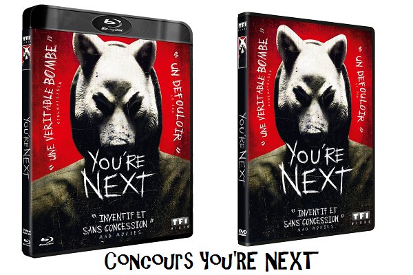 Du 15 au 29 janvier 2014 à minuit, répondez correctement aux 3 questions posées et indiquez vos coordonnées complètes. Vous gagnerez peut-être des Bluray ou des DVD du film You’re Next, dans la limite d’une seule participation par foyer. Toute participation incomplète (champ non rempli) ne pourra être prise en compte. Par ailleurs, vous augmenterez vos chances en partageant cet article sur Facebook, Twitter et Google+ (+1 chance maximum par réseau, en mettant le lien dans les commentaires ci-dessous).