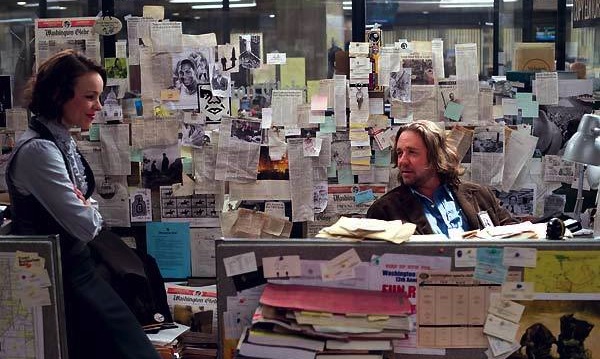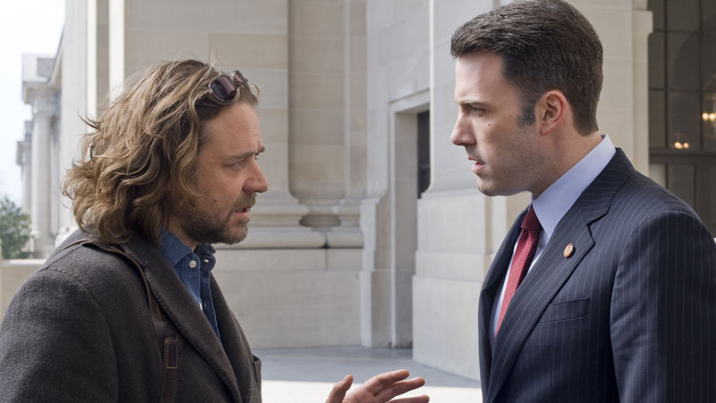La force de ce film tient également dans le trio d’acteurs principaux : Russell Crowe incarne Cal Mc Affrey, un journaliste passionné, mais un poil grincheux, qui prend sous son aile une jeune recrue blogueuse Della Frye, interprétée par Rachel McAdams (N’oublie jamais, Julie et Julia). L’actrice donne à son personnage une fraicheur naïve, tout en conservant sa niaque de journaliste. Plus de dix ans après Gladiator, l’acteur américain a toujours autant de charisme et un simple regard en dit long sur ses pensées. Le réalisateur propose au travers de cette équipe de choc un survol du métier de journaliste et de son évolution liée aux nouvelles technologies. D’un côté, il y a le vieux de la vieille qui passe sa vie sur le terrain, et de l’autre, la nouvelle génération qui n’a besoin que d’un ordinateur (et même pas de stylo). Cependant, ils sont tous les deux dans une quête de vérité qui permet à cette association improbable de fonctionner.