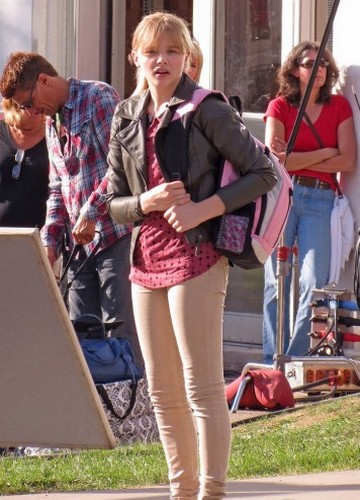 Ils se sont donnés le mot. Plusieurs set pics – comprendre photos de tournage – sont apparues sur la toile venant de sources diverses, de Just Jared à la page Facebook de Chloé Moretz. Le tournage qui vient donc de commencer est principalement centré sur les deux acteurs majeurs, Kick-Ass en la personne d’un Aaron Johnson redevenu le geek peu séduisant, et Hit Girl avec une Chloé Moretz toujours fringante avec quelques centimètres en plus.