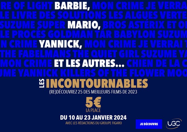Alors que les nouvelles sorties de l’année cinéma 2024 peinent à atteindre leur rythme de croisière, il existe une tradition qui permet aux spectateurs plus ou moins assidus de prendre leur mal en patience. En effet, depuis de nombreuses années déjà, d’abord Télérama, puis UGC nous permettent de passer en revue le meilleur du cinéma de l’année écoulée. Les Incontournables UGC ouvrent une fois de plus les festivités rétrospectives dès demain à travers un programme de 25 films, à découvrir ou à redécouvrir pour la somme assez modique de cinq euros par séance. La nouveauté, c’est que ce passage en deuxième exclusivité – comme on disait autrefois – dure pour une fois deux semaines pleines, jusqu’au mardi 23 janvier. Ce qui le met en concurrence frontale avec le Festival Télérama, qui ne dure, lui, qu’une semaine à partir du 17 janvier !