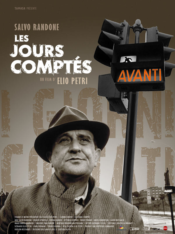 La grande époque cinématographique d’Elio Petri est celle de l’engagement quasi-militant (très à gauche), en tout cas de la contestation vigoureuse de la Démocratie-Chrétienne alors en place en Italie, ce qui fut un frein certain pour de nombreux distributeurs frileux, avant que la renommée internationale ne vienne corriger le tir (« Enquête sur un citoyen au-dessus de tout soupçon », satire politique habillée en polar, « Prix Spécial du Jury » à Cannes et « Meilleur Film étranger » aux Oscars date de 1970). Ces « Jours comptés » du début de sa carrière, relatant les étapes de la nouvelle vie de Cesare en autant de saynètes enlevées et incisives, mi-tendres, mi-amères, aux fréquents gros plans éloquents, est un film davantage dans la tradition du néo-réalisme à la De Sica, avec des ouvertures plus légères de comédie « à l’italienne », gentiment grinçante, à la Risi.