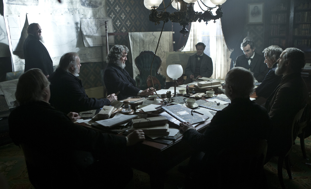 Autre point qui risque également de surprendre (même s’il est clairement annoncé depuis le début) : Lincoln, bien que se déroulant à travers le prisme du 16e président des Etats-Unis n’est absolument pas centré sur sa vie. En effet il revient sur le dernier combat de son mandat et de son existence à savoir le vote du 13e amendement qui a mis fin à l’esclavage sur le sol américain, présenté comme une cause politique (fond de guerre de sécession) face au combat de vie d’un homme. On retrouve toutes les obsessions de Spielberg réunies dans un film : l’esclavage comme cause (La couleur pourpre), le drame historique à portée universelle (La liste de Schindler), le film de guerre (Il faut sauver le soldat Ryan, en plus intimiste). C’est un parti pris qui risque de faire débat tant l’adaptation sur grand écran de la vie du président pouvait se prêter à bon nombre de choses passionnantes, de sa jeunesse modeste jusqu’à la perte de son premier enfant – sujet assez peu évoqué dans le film de Spielberg même s’il donne lieu à deux très belles scènes. Pourtant dans la période évoquée il est passionnant tant le sens du détail est là, et le scénario une pièce d’importance dans la compréhension de tout le processus qui a mené à l’adoption de l’amendement. Alors certes pour s’intéresser à Lincoln mieux vaut être passionné d’Histoire, américaine en l’occurrence, et ce n’est donc pas sûr que le public français s’intéresse franchement à tout ceci.