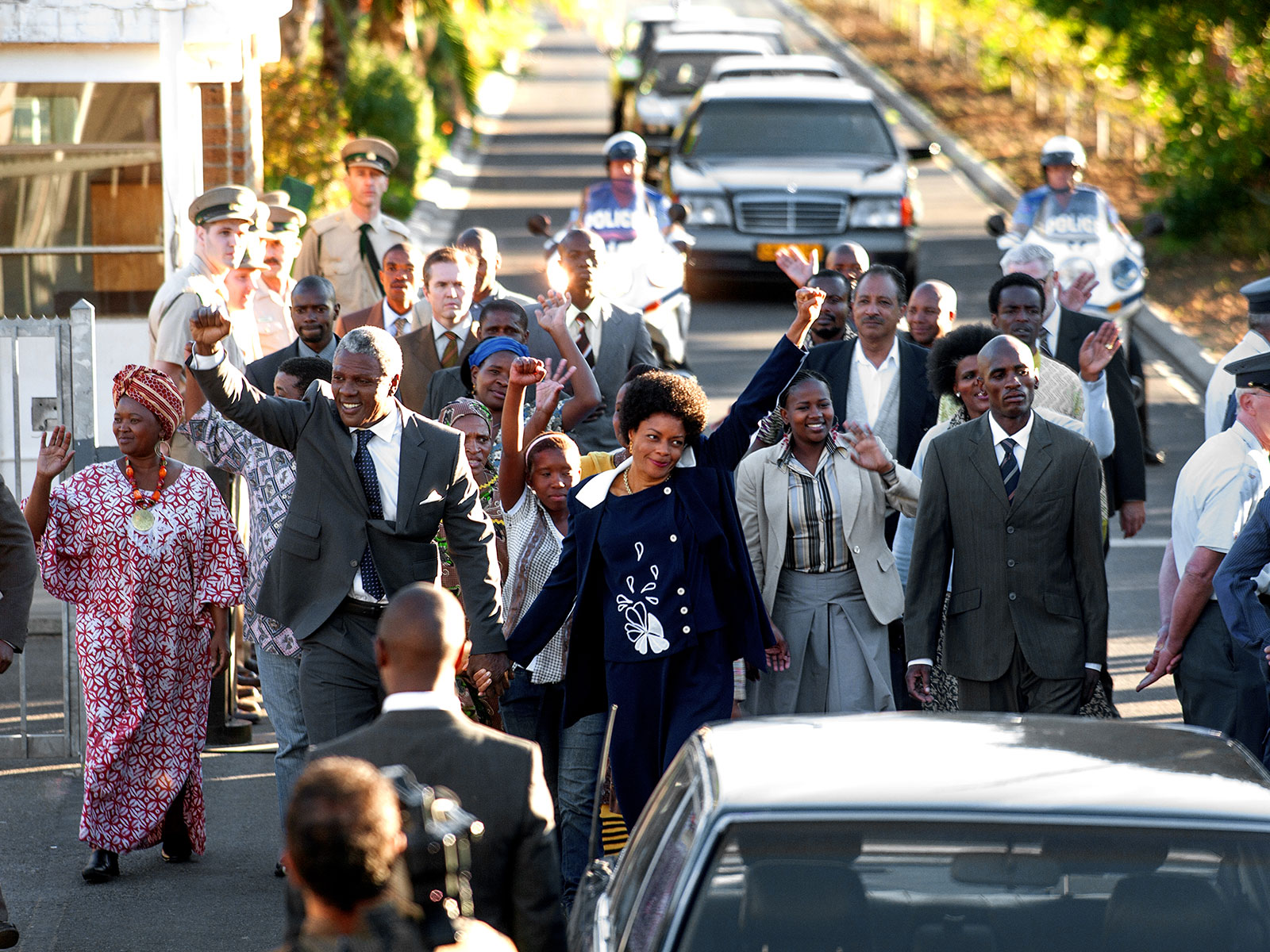 La relation de Mandela avec sa femme est des plus intéressantes et sûrement un segment assez méconnu. L’ayant soutenu toute sa vie dans son combat (et en ayant payé le prix après un an d’emprisonnement et divers humiliations) elle finira par devenir une révolutionnaire dans les forces armées. Son mari lui, voudra à tout prix éviter le bain de sang et préférera la solution diplomatique, tout en ayant la force de pardonner à ses bourreaux ses vingt-sept ans (!) d’emprisonnement. Naomie Harris joue avec une grande justesse cette femme, mariée très jeune et au départ un peu naïve et utopiste, qui finira en féroce guerrière. Leur relation est à la fois riche et complexe, les deux personnages voulant parvenir aux mêmes fins avec des moyens très différents.  L’autre force du film c’est que Mandela n’est jamais totalement idéalisé, notamment dans son rapport avec sa première femme, qu’il trompait ; et envers son premier fils qu’il n’a jamais vraiment connu, étant un père dévoué à sa cause et de fait absent.
