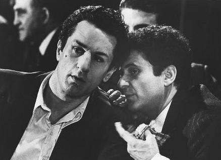 D’abord parce que le film contient tout un tas de répliques cultes et des dialogues jubilatoires laissant pleinement place à l’improvisation ce qui donne lieu à de réelles conversations de sourds à voir et revoir. Ces situations nous esquissent des sourires, voire même des rires, les seuls durant ce film sur le destin pitoyable d’un athlète déchu, arrivé au sommet et finissant sa vie en gérant de night club miteux. L’accent italien et la fausse dégaine de mauvais mafieux qu’arborent les acteurs contribuent également à ce côté comico-pathétique, et comme un bon Scarface et son Tony Montana se regarde en version originale, il en est de même pour Raging Bull (non non je ne fais pas l’apologie de la V.O…mais j’en profite un peu quand même!).