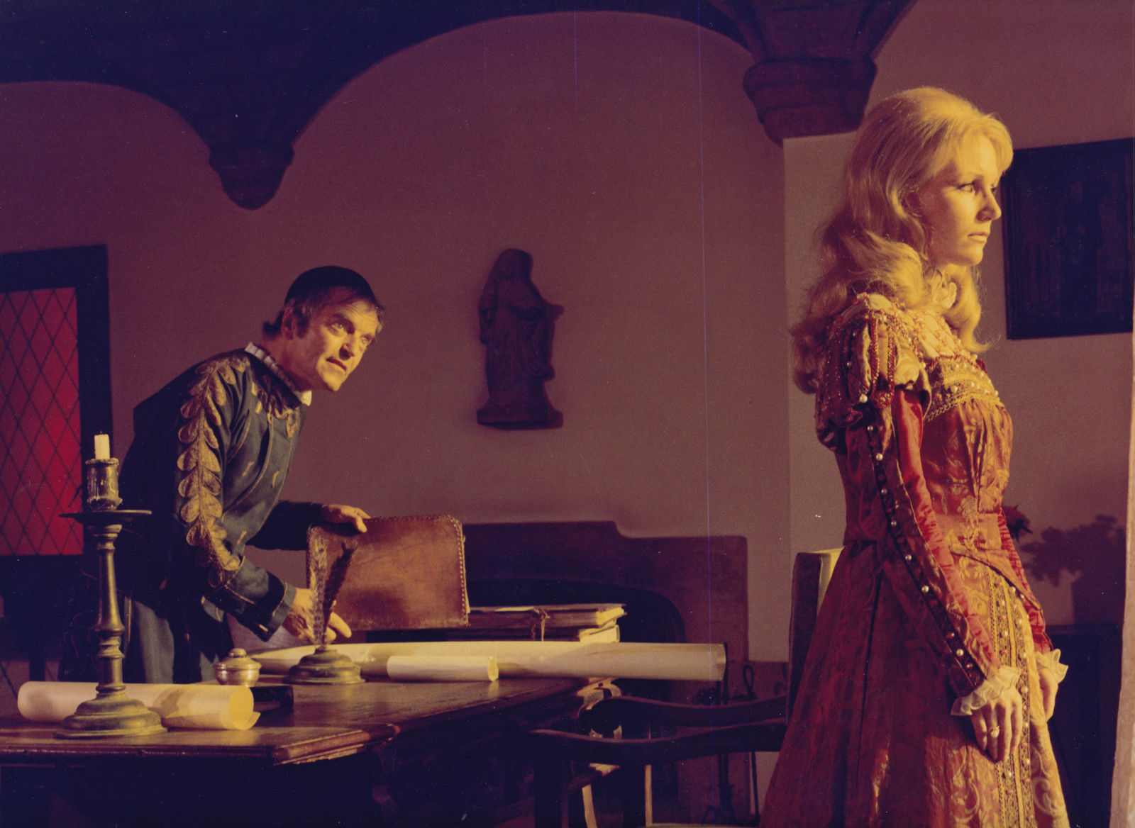 Tourné l’année suivante, Les démons (1973) s’impose d’entrée de jeu comme un film nettement plus intéressant et ambitieux. Bien sûr il n’échappera à personne que ces « démons » sont une réponse du cinéma bis au succès des Diables de Ken Russell (1971) : Jess Franco y aborde donc l’inquisition, dont le champ lexical au cinéma inclut naturellement les sorcières, les possessions diaboliques mais également la torture et une bonne dose d’érotisme. Le film suit donc la trajectoire de deux sœurs (Britt Nichols et Anne Libert) accusées de sorcellerie, et s’avérera sans conteste un des films de chasse aux sorcières les plus érotiques des années 70, Franco y mettant bien plus d’accent sur le sexe que sur la violence. Mais le sexe est ici un ressort dramatique et, comme souvent chez lui –on pense à des films tels que Paroxismus (Venus in furs) ou Crimes dans l’extase– est utilisé comme un outil de manipulation permettant aux femmes d’assouvir leurs instincts de vengeance. Par conséquent, le film contient donc une bonne quantité de scènes érotiques soft, pas désagréables à l’œil mais pas nécessairement aidées non plus d’un strict point de vue formel par l’utilisation constante du zoom, procédé inélégant mais très en vogue à l’époque, et dont l’usage serait récurrent tout au long des années 70, jusqu’à intégrer même le cinéma de Stanley Kubrick, qui le réutiliserait ad nauseam dans Shining (1980). Le surnaturel est aussi de la partie, mais on vous laisse la surprise à ce sujet. Riche d’un cachet visuel assez bluffant, tourné dans un beau Scope avec des costumes / des décors qui claquent et un budget relativement confortable, Les démons s’avère un film horrifique à l’intrigue très correctement ficelée (avec une première partie relevant de la « nunsploitation » et une deuxième plus fantastique centrée sur la vengeance), qui tiendra le spectateur en haleine jusqu’à la fin tout en développant un discours anticlérical qui réjouira à coup sûr le spectateur contemporain. Une excellente série B, qui plus est portée par une partition musicale très surprenante et originale.