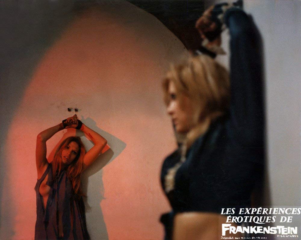 Les expériences érotiques de Frankenstein (1973) est également connu sous le titre La malédiction de Frankenstein, traduction littérale de son titre original. Si bien sûr le titre utilisé par Artus Films évite certes toute confusion possible avec le film de Terence Fisher The curse of Frankenstein (Frankenstein s’est échappé) –ce qui évitera à votre grand père de faire une nouvelle attaque en mettant le DVD ou le Blu-ray dans le lecteur– il pourra néanmoins créer dans l’esprit du spectateur l’impression que le film de Jess Franco est une parodie, à cause des multiples films aux titres fleuris et similaires qui pullulaient sur les écrans à la même période, tels que Le livre érotique de la jungle (1970), Les aventures érotiques de Pinocchio (1971) ou encore Les aventures galantes de Zorro (1972). Mais malgré ses apparences délirantes et psychédéliques, Les expériences érotiques de Frankenstein n’est pas une parodie – il s’agit d’un film fantastique complètement décomplexé, mettant en scène, en plus de Frankenstein et de sa créature, un univers de « fantasy », avec un sorcier et une étrange femme-oiseau aux appétits sexuels insatiables ; dans l’absolu, on le rapprocherait d’avantage d’une variation mystico-érotique sur Le corbeau de Roger Corman (1963) avec des morceaux de La vampire nue (Jean Rollin, 1970) dedans : en somme un un gros délire nawak psyché-70’s à fond les ballons. Visuellement épatant (il faut vraiment le voir pour le croire), porté par une musique expérimentale collant parfaitement à ce qui est montré à l’écran. Dans un esprit très influencé par la bande dessinée et les fumetti, Jess Franco signe avec Les expériences érotiques de Frankenstein une de ses œuvres les plus barrées et mémorables. Un OVNI cinématographique, complètement « from outer space ».