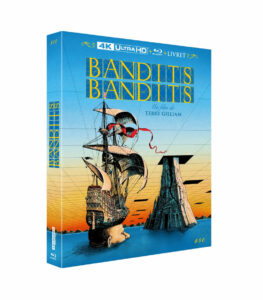 Bandits, Bandits était sorti au format DVD il y a quelques années sous les couleurs de M6 Vidéo, mais le film de Terry Gilliam méritait clairement mieux : c’est aujourd’hui chose faite grâce à ESC Éditions, qui nous propose de redécouvrir le film sur un Blu-ray 4K Ultra HD. Et d’entrée de jeu, cette édition s’impose comme indispensable, notamment en raison de son packaging, qui s’avère un véritable petit bijou propre à faire saliver les collectionneurs. Le boîtier Digipack trois volets avec étui respire le soin et l’amour du bel objet, et le livret « Les Rêves et les enfants d’abord » (32 pages) rédigé par Marc Toullec complète l’ensemble avec élégance. Côté technique, la restauration 4K supervisée par Terry Gilliam himself fait des merveilles : les couleurs sont éclatantes, les textures retrouvent leur grain d’origine, et les effets visuels, parfois rudimentaires, gagnent en lisibilité sans perdre leur charme vintage. Le Dolby Vision et le HDR10 assurent une profondeur d’image remarquable, notamment dans les scènes nocturnes ou les décors baroques. Le son n’est pas en reste : les mixages VF et VO en DTS-HD Master Audio 2.0 sont clairs, équilibrés, et respectueux du matériau d’origine. La VO est également proposée en DTS-HD Master Audio 5.1, et offre une spatialisation fine, mettant en valeur les dialogues et les ambiances sonores sans jamais sombrer dans le brouhaha. La VF, bien que très correcte, souffre en comparaison d’un léger manque de dynamique, mais rien de rédhibitoire. En somme, une édition Blu-ray 4K Ultra HD qui rend justice au film, sans trahir son esprit ni ses imperfections.
