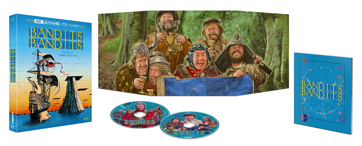 Bandits, Bandits était sorti au format DVD il y a quelques années sous les couleurs de M6 Vidéo, mais le film de Terry Gilliam méritait clairement mieux : c’est aujourd’hui chose faite grâce à ESC Éditions, qui nous propose de redécouvrir le film sur un Blu-ray 4K Ultra HD. Et d’entrée de jeu, cette édition s’impose comme indispensable, notamment en raison de son packaging, qui s’avère un véritable petit bijou propre à faire saliver les collectionneurs. Le boîtier Digipack trois volets avec étui respire le soin et l’amour du bel objet, et le livret « Les Rêves et les enfants d’abord » (32 pages) rédigé par Marc Toullec complète l’ensemble avec élégance. Côté technique, la restauration 4K supervisée par Terry Gilliam himself fait des merveilles : les couleurs sont éclatantes, les textures retrouvent leur grain d’origine, et les effets visuels, parfois rudimentaires, gagnent en lisibilité sans perdre leur charme vintage. Le Dolby Vision et le HDR10 assurent une profondeur d’image remarquable, notamment dans les scènes nocturnes ou les décors baroques. Le son n’est pas en reste : les mixages VF et VO en DTS-HD Master Audio 2.0 sont clairs, équilibrés, et respectueux du matériau d’origine. La VO est également proposée en DTS-HD Master Audio 5.1, et offre une spatialisation fine, mettant en valeur les dialogues et les ambiances sonores sans jamais sombrer dans le brouhaha. La VF, bien que très correcte, souffre en comparaison d’un léger manque de dynamique, mais rien de rédhibitoire. En somme, une édition Blu-ray 4K Ultra HD qui rend justice au film, sans trahir son esprit ni ses imperfections.