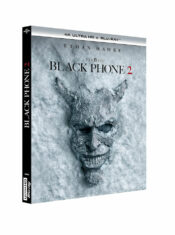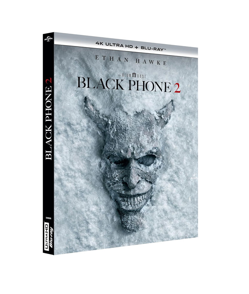 Le Blu-ray 4K Ultra HD de Black Phone 2, édité par Universal Pictures, se présente dans un packaging sobre mais efficace, un boîtier simple qui laisse toute la place à l’affiche inquiétante du film. L’image, proposée en Dolby Vision et HDR10, offre une restitution remarquable des ambiances sombres et des éclairages contrastés. Les scènes nocturnes, essentielles dans un film où la peur se cache dans les coins les plus obscurs, bénéficient d’une profondeur impressionnante : les noirs sont denses sans être bouchés, les sources lumineuses conservent leur intensité sans halos artificiels. Les couleurs saturées, héritées de l’esthétique giallo, gagnent en éclat, notamment les rouges et les bleus, qui semblent presque vibrer à l’écran. Le grain numérique est maîtrisé, offrant une texture fine et respectueuse du style voulu par le réalisateur. Côté son, le film nous est proposé en Dolby Digital+ 7.1 pour la VF, et en Dolby Atmos pour la VO. La version originale offre une spatialisation immersive, notamment dans les scènes où les voix venues d’ailleurs semblent circuler autour du spectateur. Mais la version française n’est pas en reste, nous proposant un mixage équilibré, clair, et parfaitement adapté aux dialogues comme aux effets sonores.