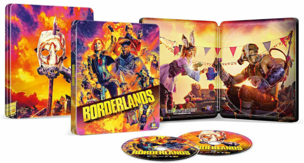 Du côté des suppléments, M6 Vidéo nous propose une demi-douzaine de featurettes toutes collées bout à bout au cœur d’un sujet intitulé « Borderlands, du jeu à l’écran » (41 minutes). On y reviendra pêle-mêle sur la notion d’adaptation, sur l’investissement du créateurs du jeu vidéo dans la production du film, sur les personnages, les costumes, les accessoires et notamment les armes, sur les cascades, les effets visuels, le production design ou encore sur la personnalité du réalisateur Eli Roth. L’ensemble aurait probablement gagné à être présenté sous la forme de petits sujets thématiques séparés plutôt qu’en bloc. On notera par ailleurs que le Blu-ray 4K Ultra HD de Borderlands édité par M6 Vidéo nous est proposé dans un superbe SteelBook aux couleurs du film.