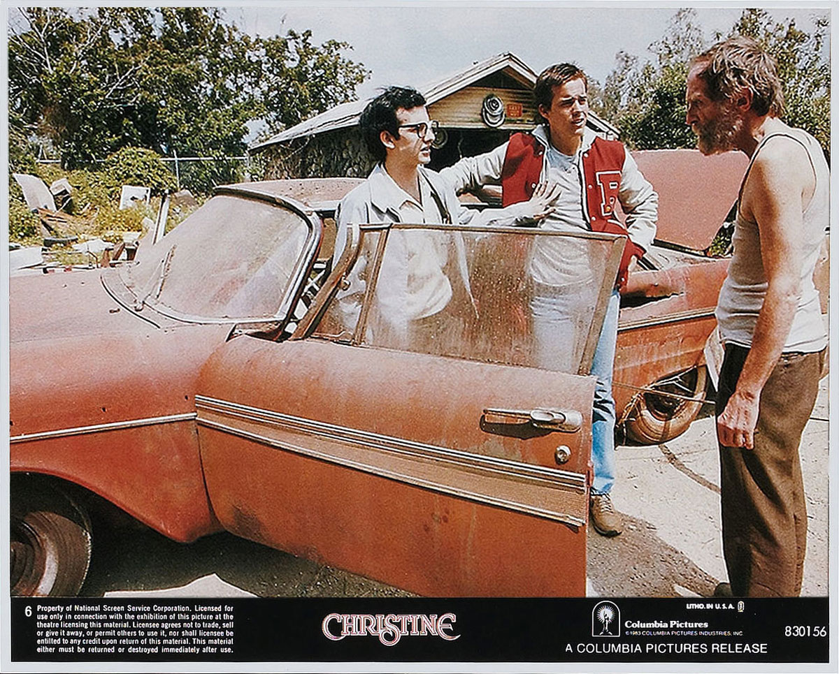 Commençant à la façon de nombreux teen movies de l’époque (American college, Porky’s, Ça chauffe au lycée Ridgemont…), reprenant les codes et la vulgarité intrinsèque du genre, Christine joue dans ses premières minutes la carte de l’évocation salace, de la masculinité décomplexée, menée par le très à l’aise Dennis (John Stockwell), et son protégé / ami d’enfance Arnie (Keith Gordon). Mais au bout de quelques instants seulement, avec la découverte de la fameuse Plymouth Fury 1958, le personnage de George LeBay (incarné par un épatant Roberts Blossom) viendra corrompre et pervertir l’ambiance jusque là décontractée du film, notamment par la fameuse réplique – empruntée à King « That’s just about the finest smell in the world… Except maybe for pussy ». Les obsessions sexuelles délivrées dans la bonne humeur durant le premier acte du film prendront dés lors des atours malsains, teintés de frustrations, de refoulement et de douleur, qui s’exprimeront chez Arnie à travers une passion violente et destructrice.