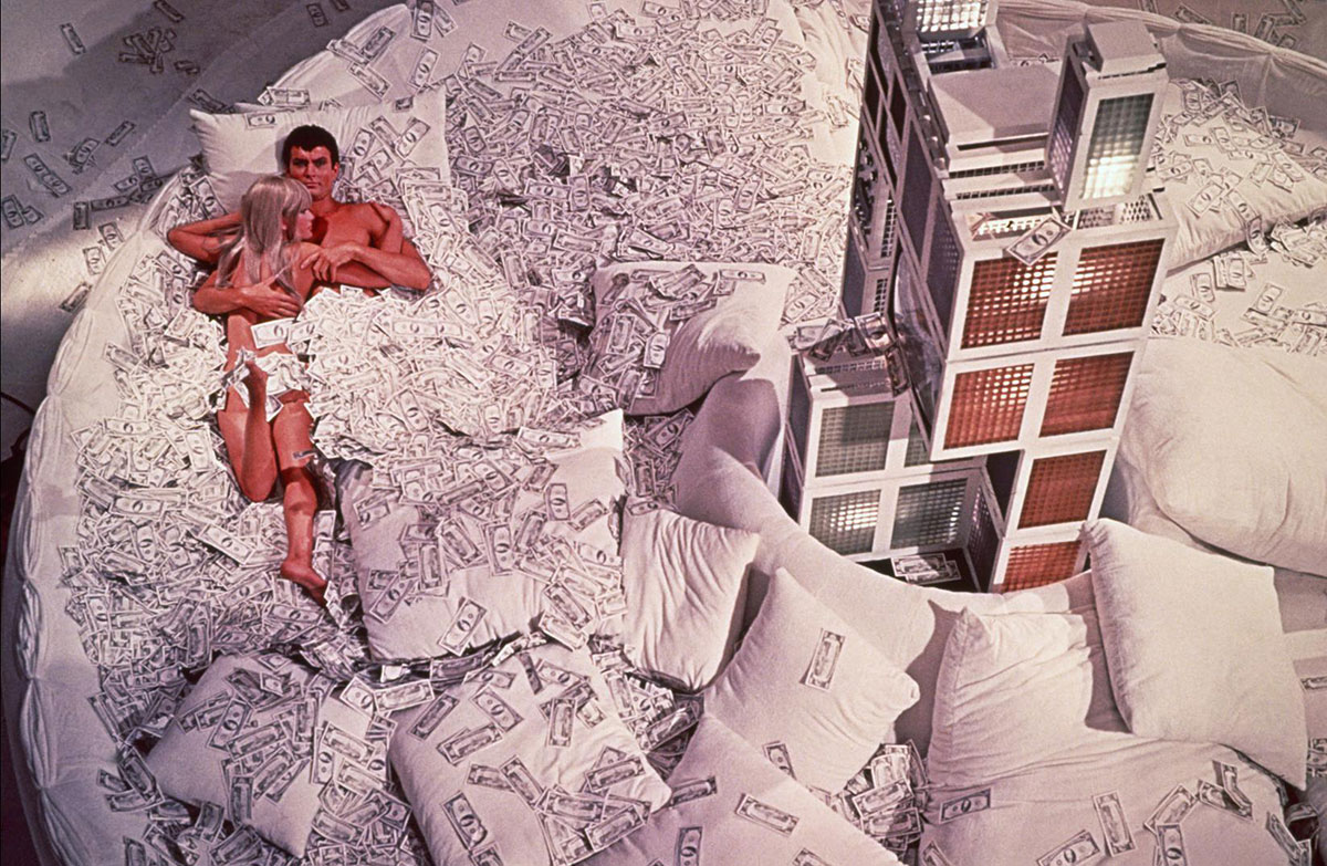 De son côté, Diabolik n’est pas un héros : c’est un voleur anarchiste, un dandy masqué qui défie l’ordre établi avec la grâce d’un chat noir. Danger Diabolik devient alors un film sur la liberté, sur le refus des règles, sur la beauté du geste gratuit – même quand ce geste consiste à voler un coffre-fort en rigolant comme un garnement trop sûr de lui. De fait, les thématiques du film résonnent avec leur époque : contestation de l’autorité, fascination pour les anti-héros, explosion des codes moraux, émergence d’une culture pop qui n’a plus peur de mélanger le kitsch, le glamour et le politique… Diabolik vole les riches, ridiculise l’État, défie la police, et s’offre même le luxe de vivre dans une grotte high-tech qui ferait pâlir d’envie le Dr Denfer. Le film devient alors une sorte de parabole pop sur la liberté individuelle, sur le plaisir de dire non, sur la beauté du geste inutile. Et dans cette liberté, il y a quelque chose de profondément 1968 : un souffle de révolte, un parfum de changement, une envie de brûler les règles pour mieux en inventer d’autres.