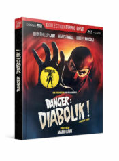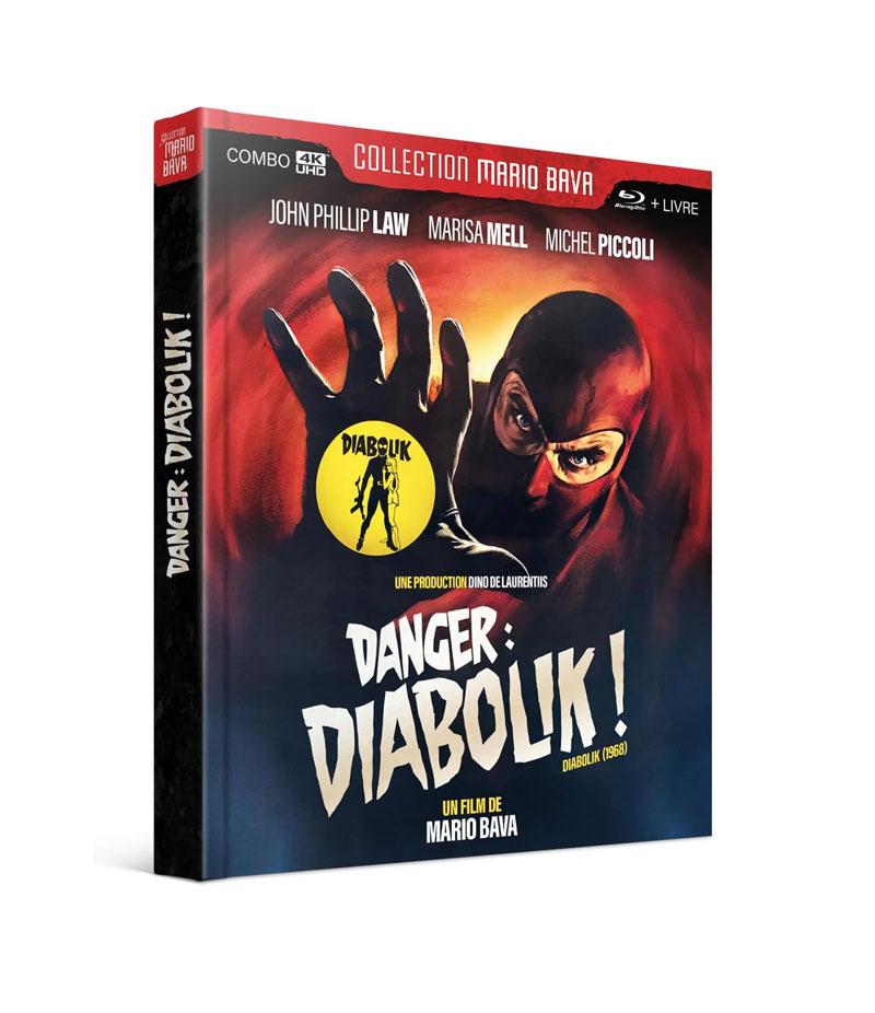 Resté totalement inédit en DVD et Blu-ray en France depuis l’avènement du format numérique, Danger Diabolik débarque finalement aujourd’hui au format Blu-ray 4K Ultra HD, sous les couleurs de Sidonis Calysta, et dans un classieux Digibook Collector qui ferait rougir un musée du design. Le boîtier, solide, élégant, accueille deux galettes et un livret de 52 pages signé Marc Toullec, que nous n’avons pas eu entre les mains mais qui s’avère probablement riche en anecdotes, analyses et documents d’époque. L’objet semble respirer le soin, la passion, et cette envie de célébrer ce film rare, devenu introuvable. Côté image, le Blu-ray 4K Ultra HD de Danger Diabolik est un choc visuel. La restauration Dolby Vision + HDR10 révèle une copie d’une beauté insolente : couleurs saturées, textures argentiques préservées, contrastes éclatants, piqué impressionnant. Les décors futuristes, les tunnels, les gadgets, les costumes : tout gagne en relief, en précision, en folie visuelle. Quelques plans plus abîmés subsistent, mais rien qui ne gâche l’expérience. Côté son, le film nous est proposé en DTS-HD Master Audio 2.0 (mono), en VO et en VF. La version originale anglaise, claire et dynamique, met en valeur les dialogues et la partition d’Ennio Morricone. La version française, doublée par des voix mythiques (Bernard Woringer, André Valmy, Jean-Claude Michel, Henri Virlojeux, et bien sûr Michel Piccoli se doublant lui-même), n’a rien d’une piste secondaire : elle est riche, vivante, parfaitement équilibrée. Les deux versions cohabitent sans hiérarchie forcée, chacune offrant une expérience cohérente et respectueuse du matériau d’origine.