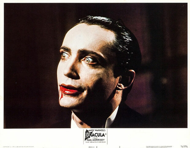 Réalisé dans la foulée de Chair pour Frankenstein, avec la même équipe et le même goût pour les fluides corporels, Du Sang pour Dracula s’inscrit dans une veine baroque et trash où le comte n’a plus rien de majestueux. Udo Kier, livide comme un yaourt oublié depuis trop longtemps dans le frigo, y incarne un Dracula maladif, dépendant du sang de vierges pour survivre. Autant dire qu’en Italie, pays de la pasta et des pulsions zérotiques, qui plus est au début des années 70, le pauvre est aussi perdu qu’un sextoy dans une messe en latin. Vous l’aurez compris, Du Sang pour Dracula repose donc sur une idée simple : celle de faire du vampire non plus un prédateur, mais une victime du progrès sexuel ? Le film, sous ses airs de comédie noire, interroge la chute des élites, et met clairement en parallèle la libéralisation des mœurs et la fin des mythes.