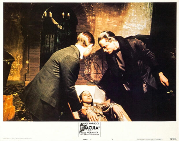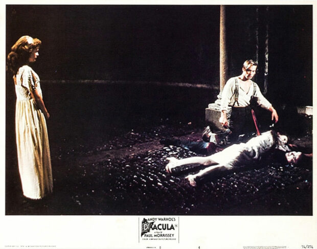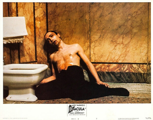 Dans le film de Paul Morrissey, Dracula n’est donc plus présenté comme un monstre, mais comme un aristocrate déchu, errant dans un monde qui ne veut plus de lui. Le sang pur devient une denrée rare, et la virginité un fantasme bourgeois. Certains verront là une critique du capitalisme, ou une métaphore de la décadence de la société occidentale, d’autres y percevront une excuse pour filmer Joe Dallesandro, dans la peau de Mario, le solide jardinier, en train de grimper tout ce qui bouge. À chacun son niveau de lecture… Toujours est-il que si Du Sang pour Dracula effleure volontiers plusieurs sujets – pureté, désir, pouvoir, religion, classe sociale, et même plomberie (à travers le fameux bidet, devenu culte malgré lui) – il n’en mène pas un seul à bon port, la faute aux nombreux trous dans le scénario que Paul Morrissey essaie en vain de combler à travers une poignée de scènes-choc détournant les clichés, parfois avec une ironie mordante.