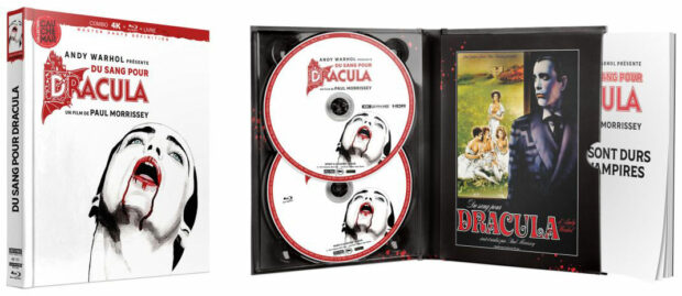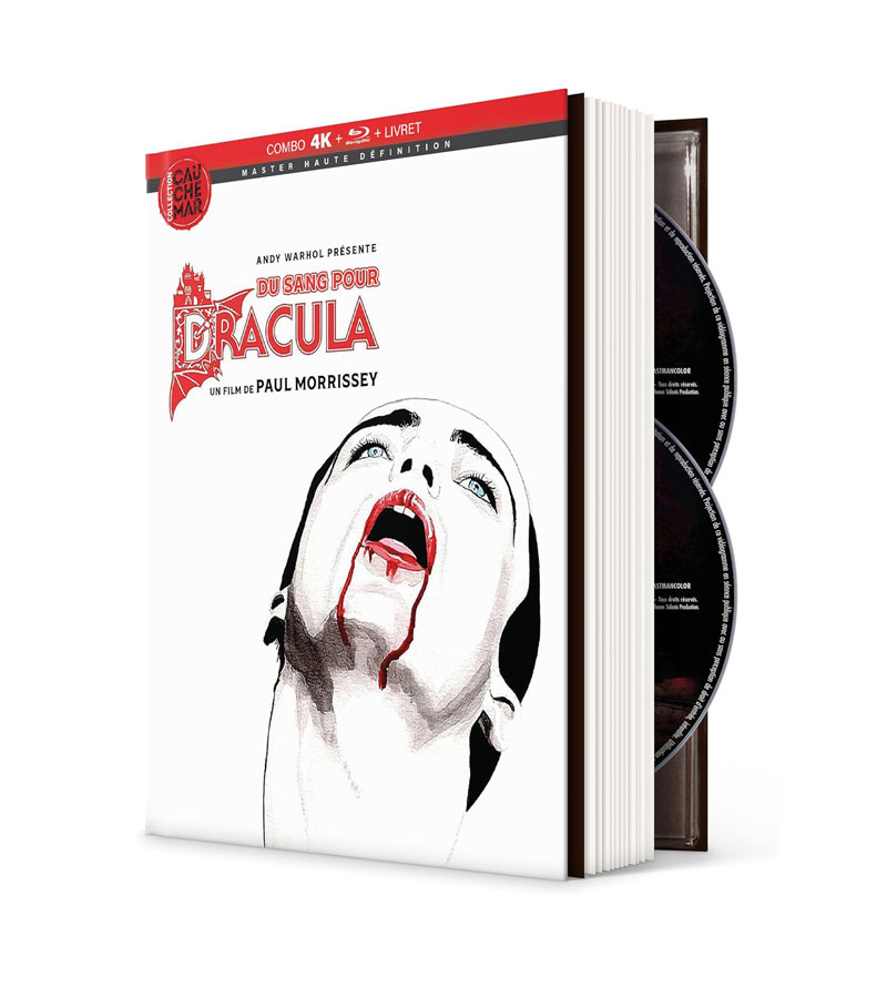 Si le film fait toujours débat plus de cinquante après sa sortie, l’édition Blu-ray 4K Ultra HD de Du Sang pour Dracula, sortie chez Sidonis Calysta il y a quelques semaines, fait quant à elle l’unanimité, grâce notamment à son packaging extrêmement soigné. Le film de Paul Morrissey nous est en effet proposé dans un Digibook limité contenant le Katka du film, le Blu-ray, et un livret de 52 pages intitulé « Les temps sont durs pour les vampires » — titre qui résume à lui seul l’ambiance du film.