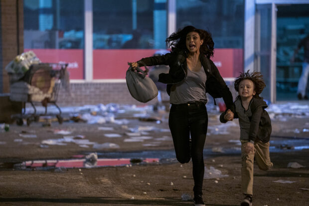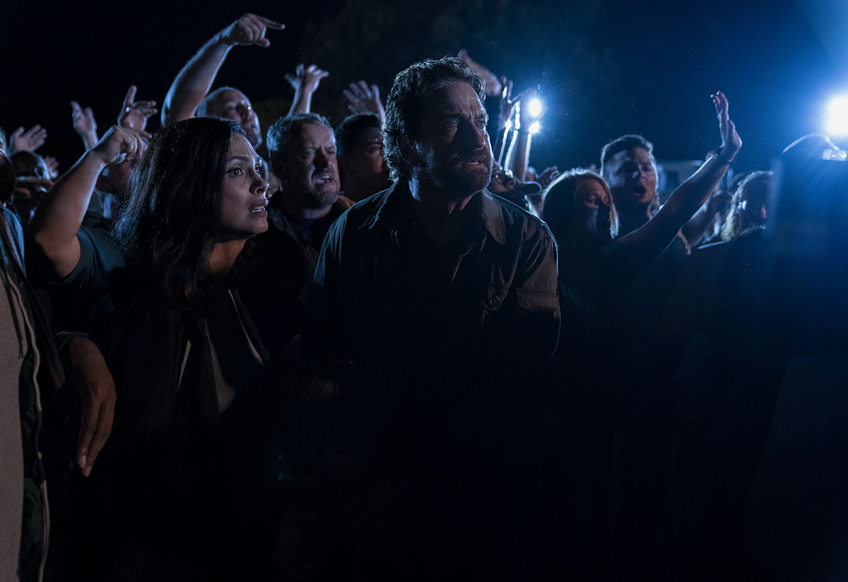 Habile, le scénario de Chris Sparling (Buried) s’attardera donc beaucoup plus sur « l’humanité » de ses personnages, obligés de lutter et de se dépasser pour leur survie, que sur la notion de « grand spectacle » telle qu’on l’entend généralement pour ce type de films. En cela, on rapprochera beaucoup plus Greenland – Le Dernier refuge d’un film tel que La Guerre des Mondes (Steven Spielberg, 2005) que du cinéma de Roland Emmerich, dans le sens où Ric Roman Waugh parvient, par son talent de metteur en scène, à faire monter la tension et le sentiment de panique générale bien au-delà de l’écran, transmettant au spectateur – notamment grâce à un remarquable travail sur le son – un malaise diffus et durable qui ne le quittera pas jusqu’aux dernières minutes du film.