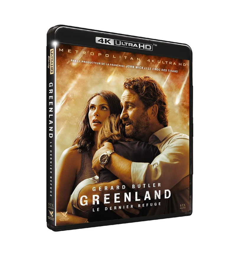Quelques années après une première édition Blu-ray, et quelques jours seulement après la sortie de sa suite dans les salles obscures, Greenland – Le Dernier recours s’offre aujourd’hui une édition Blu-ray 4K Ultra HD bien méritée. Côté image, ce Blu-ray 4K Ultra HD bénéficie des technologies Dolby Vision et HDR10, et autant dire que le film de Ric Roman Waugh profite pleinement de cette montée en gamme. Les contrastes gagnent en profondeur, notamment dans les scènes nocturnes ou semi obscures où les lueurs orangées des fragments cométaires viennent lécher les visages avec une intensité nouvelle. Les couleurs, souvent plus naturelles que dans les blockbusters catastrophes habituels, gagnent en nuance : les bleus du ciel, les gris métalliques des infrastructures, les teintes chaudes des intérieurs familiaux… tout apparaît plus riche, plus texturé. Les détails du grain de peau, des vêtements, des décors urbains ressortent avec une précision appréciable. On pourra noter, dans quelques plans très sombres, un léger bruit vidéo, mais rien de gênant : l’ensemble reste solide, lisible, et très respectueux de la photographie originale. Une belle réussite pour un film qui repose autant sur la tension atmosphérique que sur l’impact visuel. Le son, lui, est un véritable terrain de jeu. Metropolitan nous propose en effet deux mixages Dolby Atmos, en VF comme en VO, et c’est un vrai plaisir de constater que les deux pistes ont bénéficié d’un soin équivalent. La version originale reste évidemment la plus précise : spatialisation ample, effets verticaux bien exploités, grondements célestes qui semblent traverser la pièce, et dialogues parfaitement intégrés au chaos ambiant. La version française, de son côté, surprend agréablement : dynamique, claire, immersive, elle ne trahit jamais l’intention sonore du film. Les impacts, les explosions, les vibrations sourdes des fragments cométaires, tout est restitué avec une belle ampleur. Les canaux arrière sont régulièrement sollicités, et la scène sonore globale enveloppe le spectateur comme une bulle de tension continue. Pour un film catastrophe, c’est exactement ce qu’on attend : une bande-son qui respire, qui vibre, qui secoue sans jamais saturer.