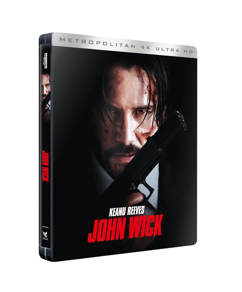 Pour célébrer dignement les dix ans de John Wick, Metropolitan Film & Video dégaine un objet qui ferait frissonner n’importe quel collectionneur insomniaque : un boîtier métal SteelBook collector limité, lourd comme une promesse de vengeance et élégant comme un costume trois pièces fraîchement repassé par un tueur à gages méticuleux. Le visuel, tout en lignes nettes et en contrastes tranchants, reprend l’iconographie iconique du film : silhouette de Keanu Reeves, armes stylisées, palette chromatique nocturne. L’ensemble respire la classe, la vraie, celle qui ne cherche pas à en mettre plein la vue mais qui impose le respect par sa simple présence. Le SteelBook accueille deux Blu-ray 4K Ultra HD, parfaitement logés dans un intérieur illustré qui prolonge l’univers du Continental. On est clairement dans le haut du panier, le genre d’édition qu’on pose sur une étagère comme un trophée.