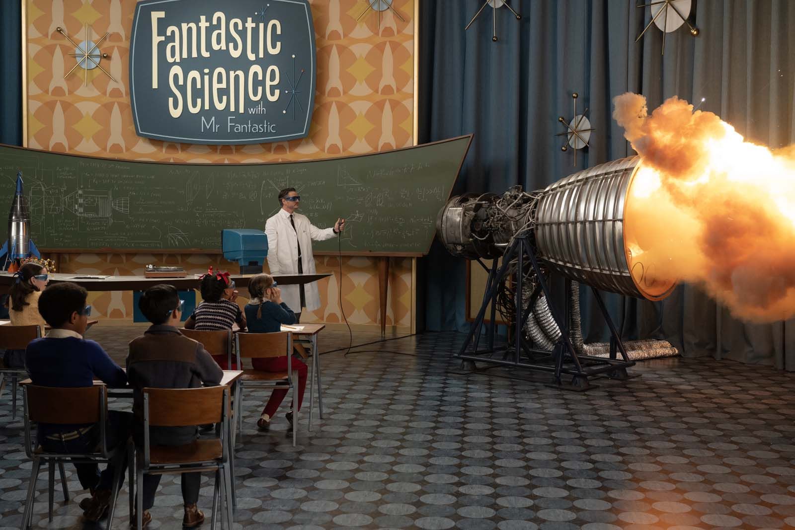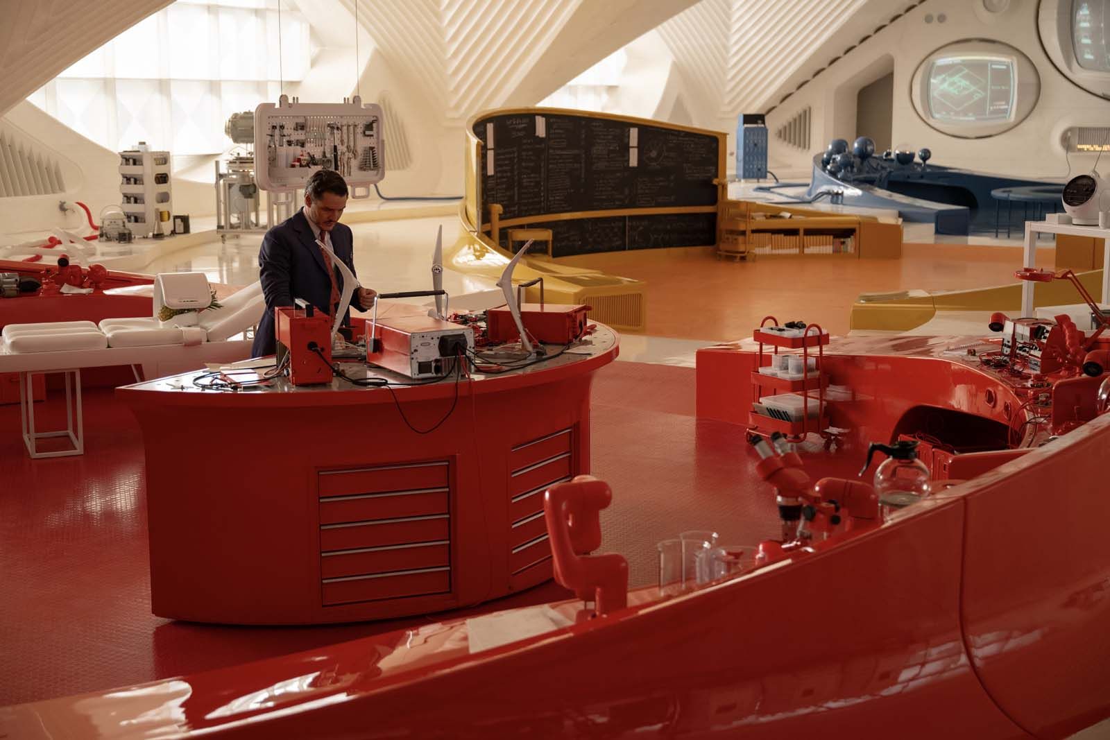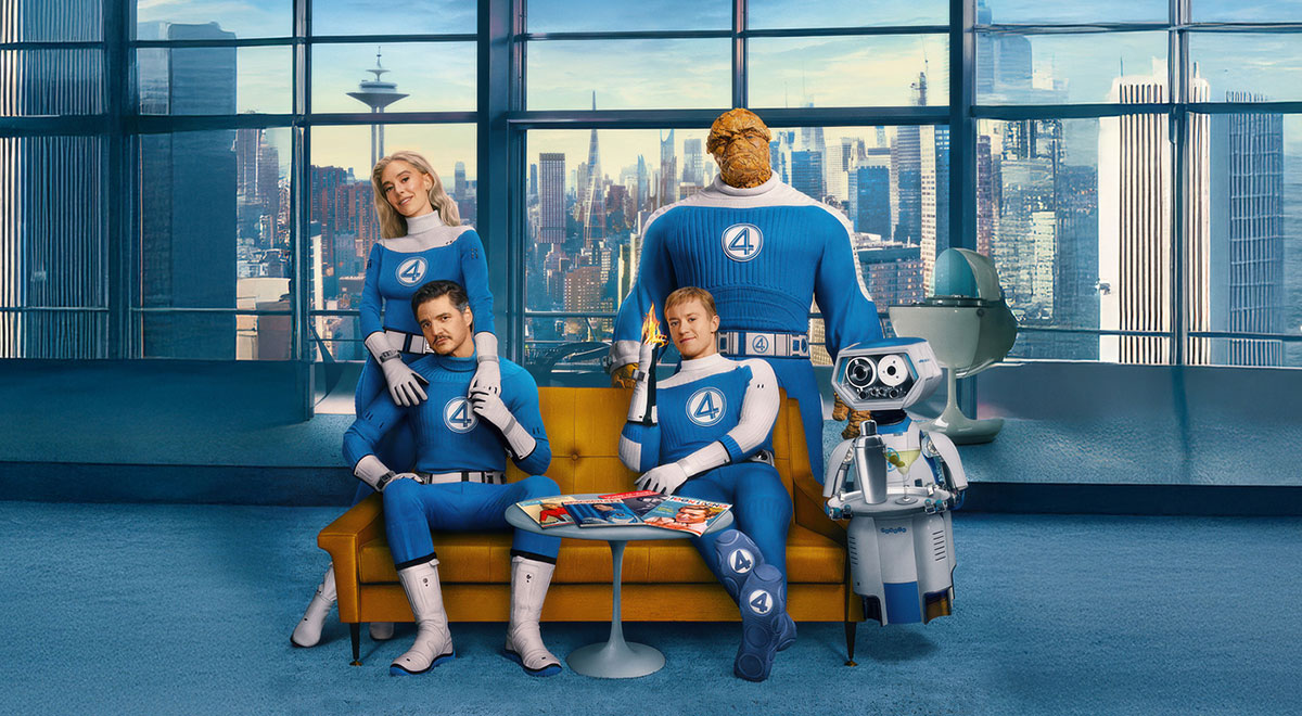 Les 4 Fantastiques : Premiers pas est le 37ème film de l’univers cinématographique Marvel (MCU) et le premier de la phase 6. Et pour bien marquer la rupture avec la phase précédente, le film de Matt Shakman ne se contente pas de ramener la « première famille » des comics sur grand écran, mais il prend grand soin de les inscrire dans une logique de continuité jusqu’ici inédite. Ainsi, l’utilisation de la Terre-828 comme cadre narratif permet non seulement de justifier leur absence lors de la grande bataille contre Thanos, mais également d’offrir au spectateur une esthétique rétro-futuriste qui tranche avec l’habituel vernis techno-clinique du MCU. On se retrouve dans un univers où les voitures volent comme dans un vieux rêve de salon de l’automobile des années 60, et où les costumes semblent sortis d’un défilé de mode sponsorisé par le labo spatial secret d’un méchant de James Bond. Le côté rétro-futuriste du film n’est pas qu’un gimmick esthétique : il traduit une vision du progrès figée dans une utopie des années 60, où l’avenir se rêvait en chrome et en fusées. On pourrait presque dire que Les 4 Fantastiques : Premiers pas est un film sur la mémoire des imaginaires collectifs, et sur la manière dont la science-fiction dialogue avec ses propres fantômes (une idée déjà caressée par le réussi À la poursuite de demain en 2015).