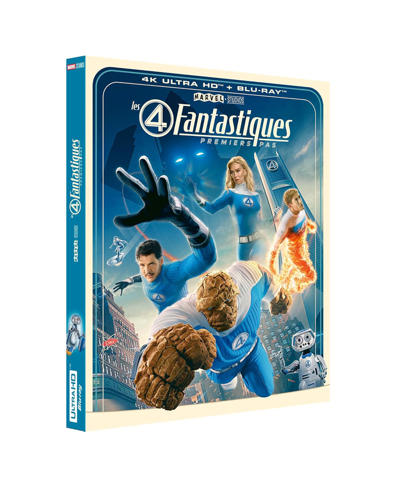 Le Blu-ray 4K Ultra HD de Les 4 Fantastiques : Premiers pas est édité par Marvel Studios, et bénéficie d’un master Dolby Vision + HDR10 qui met en valeur l’esthétique rétro-futuriste du film. L’image est d’une précision redoutable : les textures métalliques des décors de la Terre-828 scintillent avec une netteté impressionnante, et les contrastes sont parfaitement gérés, même dans les séquences spatiales. Les couleurs saturées, volontairement vintage, trouvent ici un écrin idéal. On pourra chipoter sur quelques plans nocturnes légèrement bruités, mais dans l’ensemble, le rendu est impeccable. Côté son, la VO en Dolby Atmos offre une spatialisation immersive, avec des effets qui enveloppent littéralement le spectateur. La VF en Dolby Digital+ 7.1 s’en sort également de façon assez remarquable, ne manquant jamais de dynamisme dans les scènes d’action. Le mixage reste clair, et les dialogues sont parfaitement audibles. Bref, le Blu-ray 4K Ultra HD de Les 4 Fantastiques : Premiers pas est une réussite technique, qui permet de redécouvrir le film dans des conditions optimales.